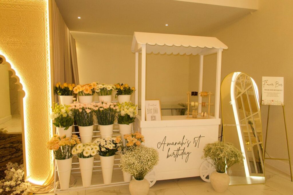 Vier een verjaardag op een unieke en persoonlijke manier. De flowerbar zorgt voor een creatieve beleving waarbij gasten een boeket maken dat past bij de sfeer van het feest.